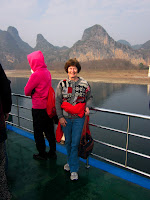Me up on top, a boat similar to ours, and a guy selling fruit to us.